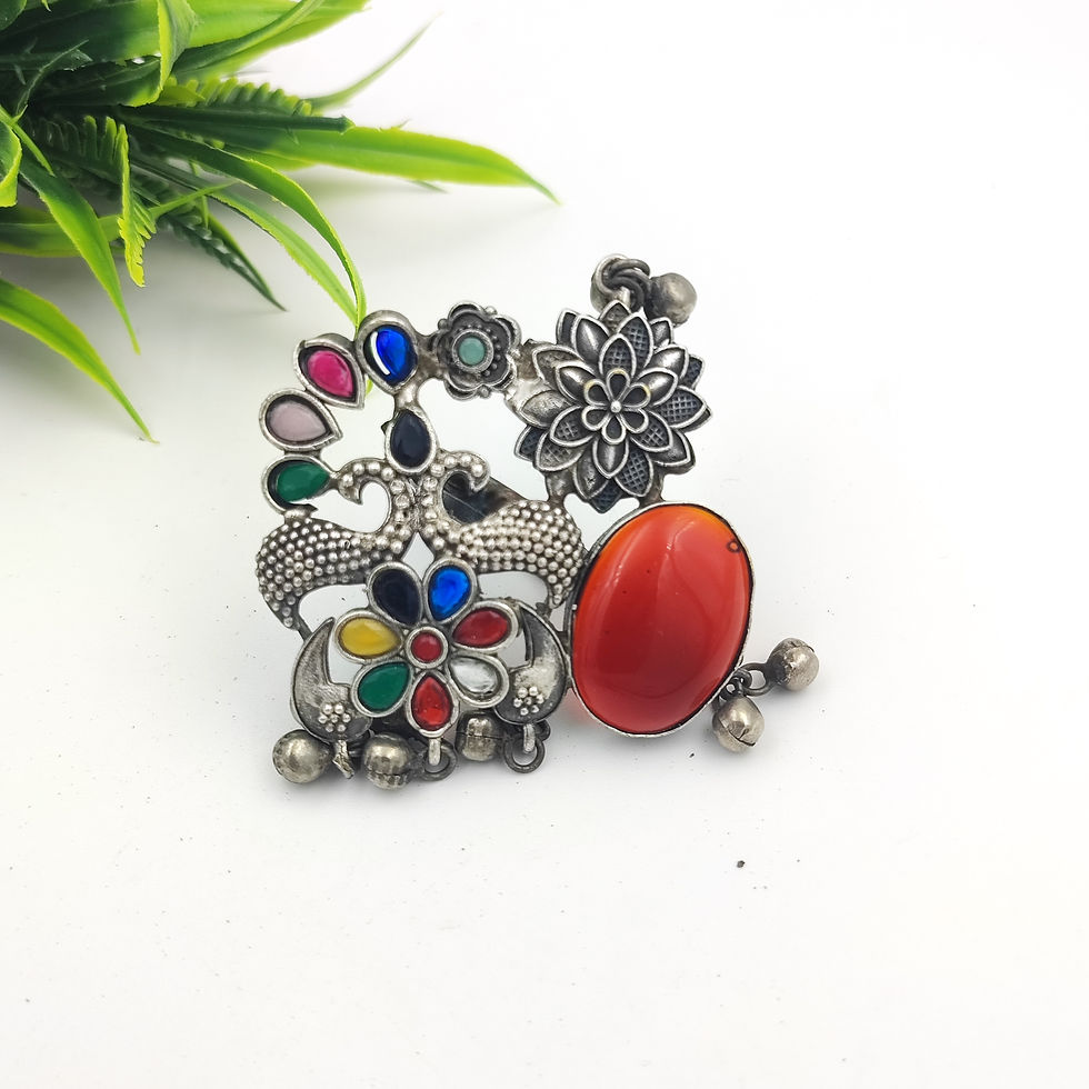 Oxidized Ethnic Silver Adjustable Fusion Gemstone Ring